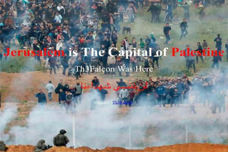 افراسيانت - نفذ "هاكرز" فلسطينيون وعرب ، سلسلة من الهجمات الالكترونية على مواقع اسرائيلية، ووضعت صورة على هذه المواقع لمسيرات العودة على حدود قطاع غزة، وكتب عليها باللغة العربية والانجليزية " القدس عاصمة فلسطين " .