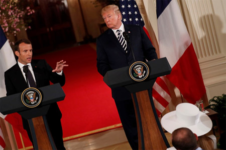 فيما قال ترمب إن بلاده تتعاون مع فرنسا لمنع انتشار الأسلحة النووية، لافتاً إلى أن إدارته لن تكرر أخطاء الإدارة الماضية، وستواصل ضغطها على إيران.