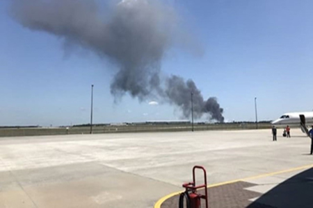 وعرضت العديد من القنوات التلفزيونية الأميركية مشاهد للطائرة تحترق.