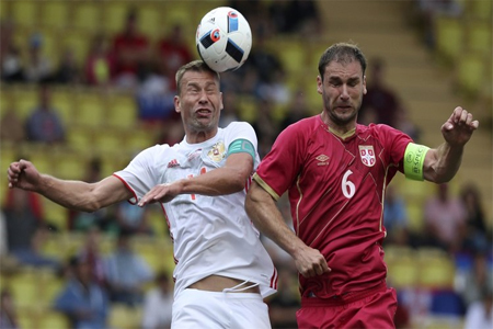 ووضع المهاجم الروسي أرتيوم دزيوبا منتخب بلاده في المقدمة بهدف متأخر سجله في الدقيقة الـ 85، ورد عليه الصربي ألكسندر ميتروفيتش بهدف التعادل قبل دقيقتين من انتهاء الوقت الأصلي للمباراة التي جرت بينهما يوم الأحد 5 يونيو/حزيران، على ملعب "لويس الثاني" في موناكو.