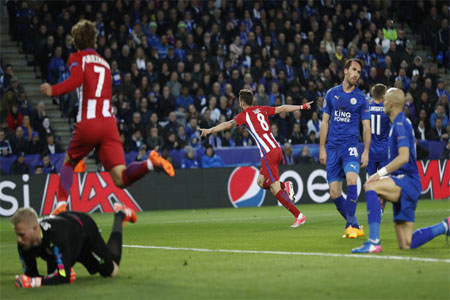 وحجز أتلتيكو مدريد بطاقة العبور إلى المربع الذهبي لدوري الأبطال، بتفوقه على ليستر سيتي (2-1)، بنتيجة مباراتي الذهاب والإياب.