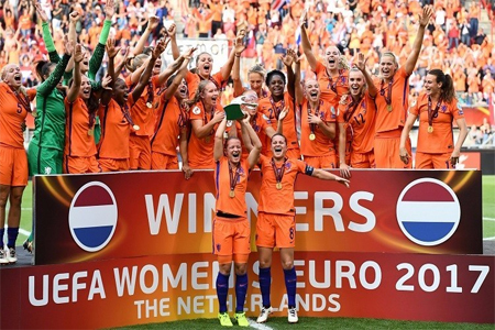 افراسيانت - توّج منتخب هولندا للسيدات بلقب أمم أوروبا "هولندا 2017" بعد الفوز في المباراة النهائية منتخب الدانمارك 4-2 امس.