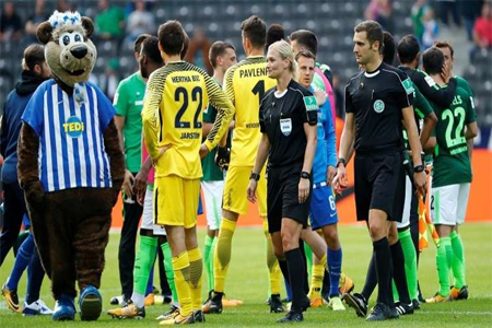 افراسيانت - أصبحت الحسناء بيبيانا شتاينهاوس، أول امرأة، تتولى تحكيم مباراة في دوري الدرجة الأولى الألماني لكرة القدم، بإدارتها لقاء فريق هيرتا برلين وضيفه فيردر بريمن (1-1).
