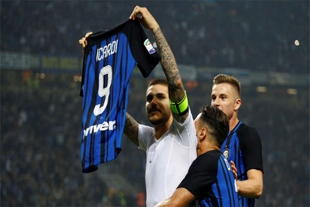 افراسيانت - قاد المهاجم الأرجنتيني، ماورو إيكاردي، فريقه انتر ميلان لحسم ديربي "الغضب" أمام ميلان بتسجيله هاتريك 3-2، ضمن مباريات الجولة الثامنة من الدوري الإيطالي لكرة القدم.