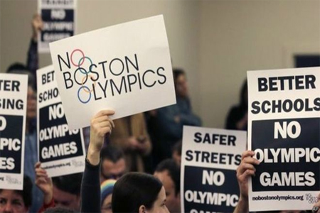 خرج مواطنو بوسطن في مظاهرات طالبت بإنفاق المزيد من الأموال على تحسين أوضاع المدينة بدلا من الإنفاق على الأولمبياد.