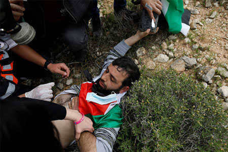 NEWS 01 April 2017 Hits: 345 Palestinian protesters marking Land Day scuffle with Israeli security forces Print Email Please Rate Vote 1 Vote 2 Vote 3 Vote 4 Vote 5 A Palestinian protester uses a slingshot to hurl stones towards Israeli troops, March 30, 2017. Prev Next