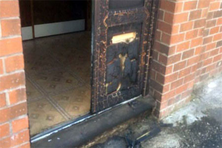 Afrasianet - The door of an Islamic center in Oldham, outside Manchester, was set alight in an arson attack hours following the suicide bombing at the nearby Manchester Arena in which 22 people died.