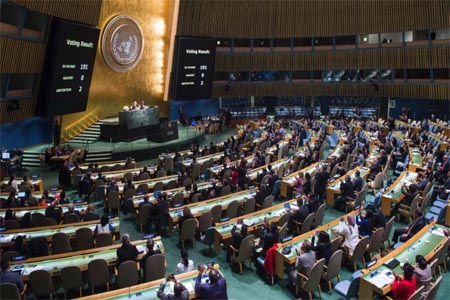 كانت الأمم المتحدة قد اصدرت قرارا، باغلبية 128 صوتا مقابل تسعة أصوات وامتناع 38 دولة عن التصويت، أكدت فيه أن أي قرارات أو إجراءات يقصد بها تغيير طابع مدينة القدس أو وضعها أو تكوينها الديموغرافي ليس لها أثر قانوني وتعد لاغية وباطلة ويتعين إلغاؤها امتثالا لقرارات مجلس الأمن ذات الصلة. وأكد القرار أن مسألة القدس هي إحدى قضايا الوضع النهائي، التي يتعين حلها عن طريق المفاوضات، وفقا لقرارات مجلس الأمن ذات الصلة.