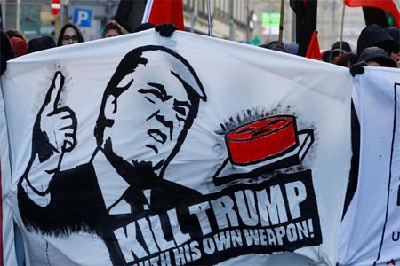 وكتب 17 عسكريا في رسالة موجهة إلى الكونغرس ومنشورة على الموقع الإلكتروني لمؤسسة Global Zero الحقوقية المؤيدة لنزع السلاح النووي: "لقد أعربنا قبل الانتخابات عن قلقنا إزاء أهلية دونالد ترامب لتولي مهام القائد الأعلى للقوات المسلحة.. وأخطرنا بضرورة منع وصوله إلى ما يسمى بـ"الزر النووي". وبعد سنة على توليه الرئاسة، تزايدت مخاوفنا وعلينا أن نثير الموضوع مجددا".