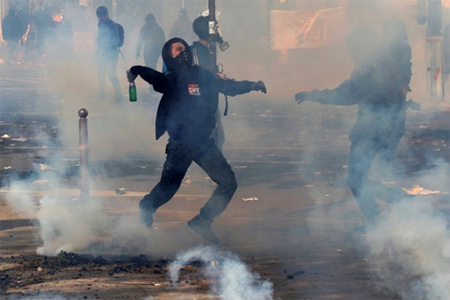 افراسيانت - استخدمت قوات الأمن الفرنسية مدافع المياه والغاز المسيل للدموع، امس، لتفريق مئات المحتجين الملثمين بعدما حطموا نوافذ محال تجارية وألقوا القنابل الحارقة في بداية مسيرة_يوم_العمال السنوية في باريس.