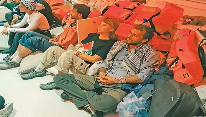 وقالت في المقطع “إذا كنتم تشاهدون هذا الفيديو فلقد تم اختطافي واقتيادي رغما عني من القوات الإسرائيلية. مهمتنا الإنسانية لم تكن عنيفة وملتزمة بالقانون الدولي” . وقالت وزارة الخارجية الإسرائيلية على منصة إكس “كل الركاب بخير وبصحة جيدة، وهم في طريقهم بسلام إلى إسرائيل حيث سيتم ترحيلهم إلى أوروبا” .