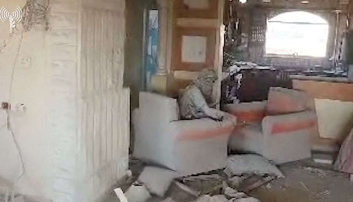 لقطة للسنوار من فيديو وزّعه الجيش الإسرائيلي في 17 أكتوبر 2024 أخذ من مسيرة قبل لحظات من استشهاده في حي تل السلطان
