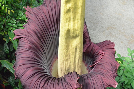 افراسيانت - أزهرت في مدينة جالفستون التابعة تكساس في الولايات المتحدة وردة جثمان corpse flower mortitsiya يزيد وزنها على قنطار( مئة كلغم ) ويبلغ قطر وسطها 3 أمتار.