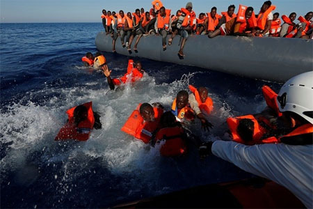 وأنقذت سفينة فينكس التابعة لمجموعة (ميجرانت أوفشور آيد ستاشن) اللاجئين اليائسين بعد أن قفزوا من قوارب مطاطية متهالكة على أمل البقاء على قيد الحياة.