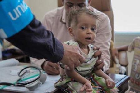 البيان قال إنّ 150 ألف طفل يمنيّ يعانون من سوء التغذية قد يموتون خلال الأشهر المقبلة، محذّراً من تفشي مرض الخنّاق كاشفاً في الوقت عينه أنّ التحالف السعوديّ يمنع الأمم المتحدة من إدخال اللقاحات اللازمة.