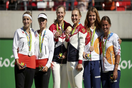 افراسيانت - أحرز الثنائي الروسي، يلينا فيسنينا ويكاترينا ماكاروفا، الميدالية الذهبية لمسابقة التنس للزوجي، وذلك ضمن فعاليات دورة الألعاب الأولمبية الصيفية 2016 المقامة حاليا في ريو دي جانيرو.