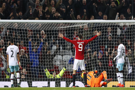 افراسيانت - أكمل فريق مانشستر يونايتد عقد الدور قبل النهائي من بطولة كأس الرابطة الإنكليزية للمحترفين لكرة القدم، بفوزه على ضيفه وست هام يونايتد (4-1)، الأربعاء 30 نوفمبر/تشرين الثاني.