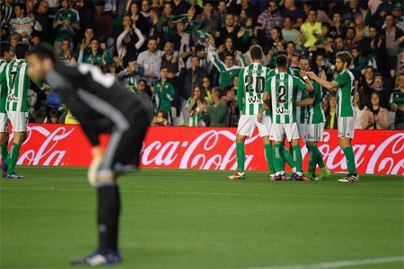 أحرز هدفي ريال بيتيس رافا نافارو و روبن كاسترو في الدقيقتين (4 و8) على الترتيب.