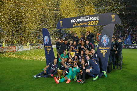 افراسيانت - توج باريس سان جيرمان بلقب كأس الرابطة الفرنسية للمرة الرابعة تواليا والسابعة في تاريخه بفوزه العريض على متصدر "ليغ 1" موناكو بنتيجة 4-1 في المباراة النهائية.