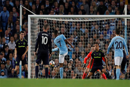 وأحرز واين روني "الفتى الذهبي" هدف السبق لفريق إيفرتون من متابعة لكرة عرضية من زميله دومينيك كالفيرت-ليوين من الجهة اليمنى، في الدقيقة 35. وأنقذ رحيم سترلينغ السيتي من الهزيمة، بهدف رائع سجله بتسديدة "على الطاير"، في الوقت القاتل، قبل سبع دقائق من انتهاء الوقت الأصلي للقاء، الذي أقيم، اليوم الثلاثاء، على ملعب "الاتحاد".