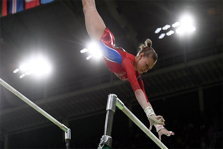 وأحرز المنتخب الروسي في وقت سابق، الميدالية الذهبية لمسابقة الجمباز لفرق السيدات.