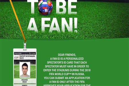افراسيانت - أصدرت روسيا بطاقات دخول للراغبين في تشجيع منتخبات بلادهم في بطولة كأس العالم في روسيا دون تأشيرة، وذلك من خلال الحصول على بطاقات "ID FAN"، وهي بطاقات خاصة بالمشجعين فقط.