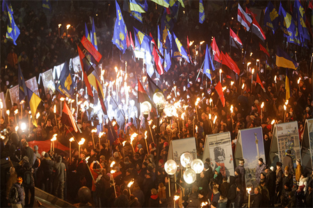 The neo-Nazi torchlight processions, which are frequently held in post-coup Ukraine, receive different coverage, if any at all. The Ukrainian far right stages yearly marches on January 1, marking the birthday of the WW2-era Nazi collaborator Stepan Bandera, hailed as a national hero.