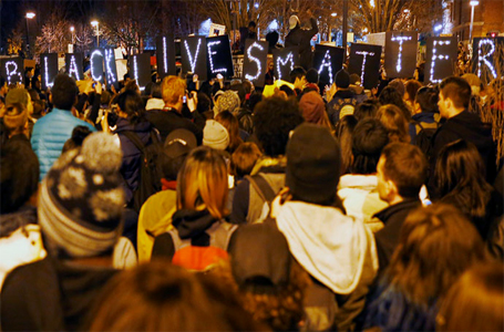 At one point during the evening’s events, demonstrators interrupted traffic by blocking streets and marching down a local highway.