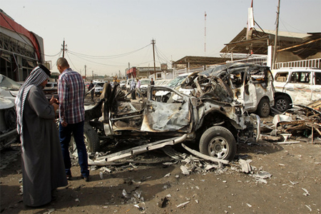 A bomb on a commercial street in Mahmoudiya, a town just south of the capital, killed two people and wounded six.