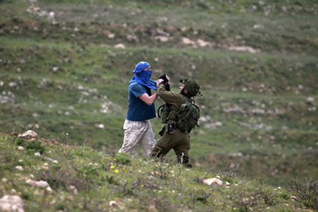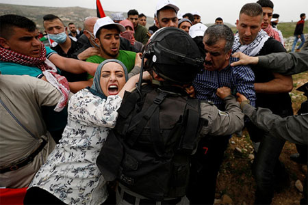 NEWS 01 April 2017 Hits: 345 Palestinian protesters marking Land Day scuffle with Israeli security forces Print Email Please Rate Vote 1 Vote 2 Vote 3 Vote 4 Vote 5 A Palestinian protester uses a slingshot to hurl stones towards Israeli troops, March 30, 2017. Prev Next