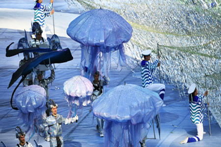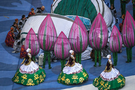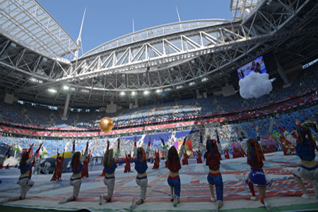 The opening ceremony turned the St. Petersburg Arena into the setting for a spectacular and bright show, with more than 2,000 actors involved in the performance.