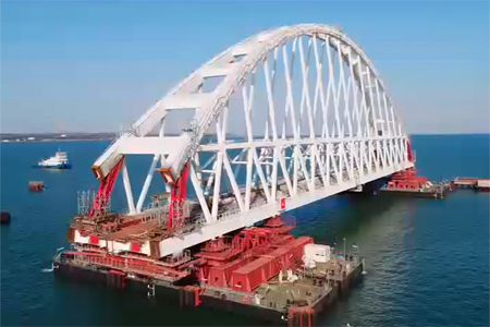 Afrasianet - Russian engineers have begun a 72-hour moving operation to position a 227-meter-long railway arch for the Crimea Bridge on the piers located in the Kerch Strait in what is regarded as a “unique operation” in global bridge building.
