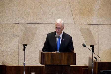 In the same speech from the rostrum of the Israeli Parliament Pence urged the Palestinians to resume long-stalled peace talks with the Jewish state.