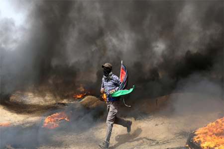 Some 445 Palestinians were injured in the day's protests, including 96 who were wounded by Israeli army fire.