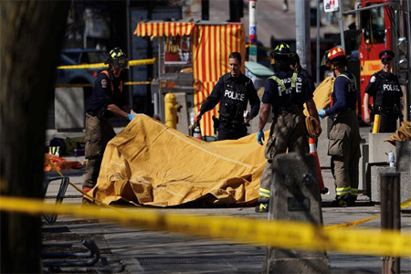 Afrasianet - A white Ryder rental van killed nine people and injured 16 when its driver plowed through a busy Toronto sidewalk on a sunny Monday afternoon, police said.